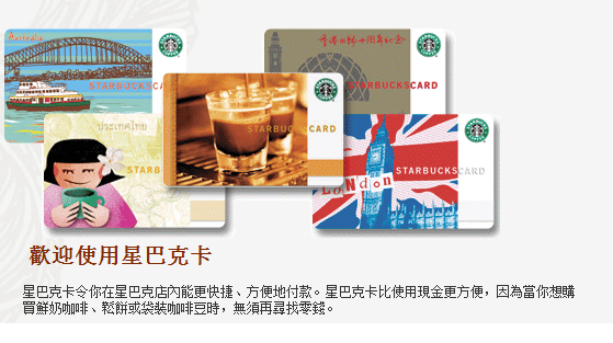 1998年起,美国星巴克发行了第一张星巴克的随行卡,之后德国、英国、加拿大、澳大利亚、中国香港、中国台湾、中国大陆、日本、韩国、泰国、荷兰等数十个国家及地区也陆续推出了自己的星巴克卡