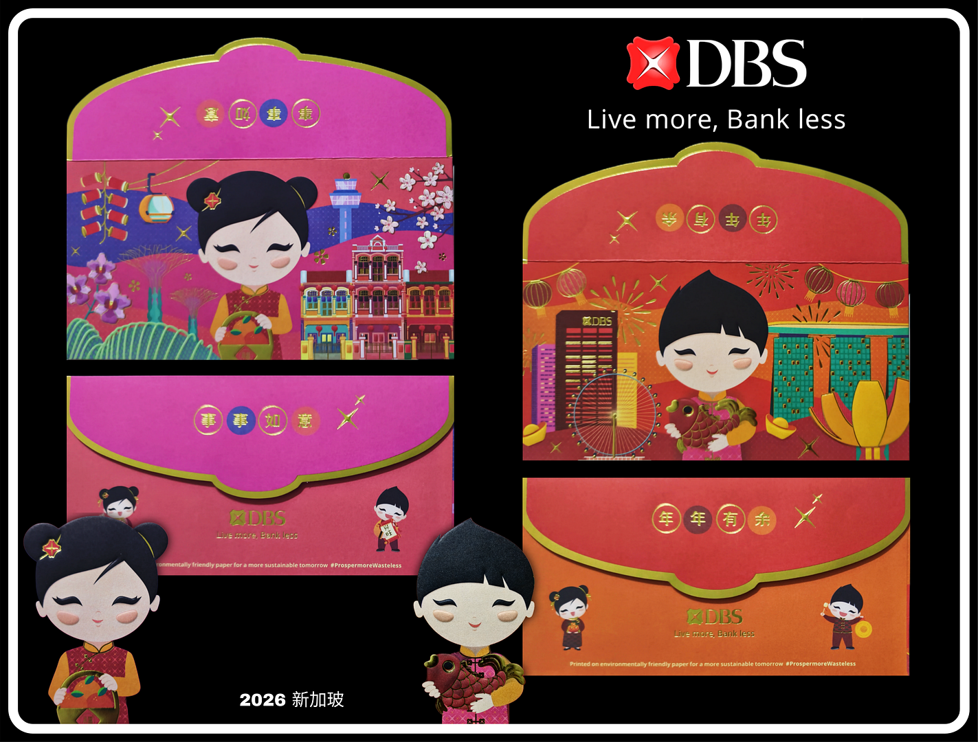 YOHO系商場特意推出一套四款「金瑞福運」御守利是封,設計靈感源自日本御守,寓意守護與祝福。利是封以淡雅柔和的粉彩色調示人,封套配合華麗燙金激凸印刷工藝,低調中見華貴。4款設計代表不同祝願,包括—「幸福御守」、「美滿御守」、「健康御守」與「財運御守」,並以象徵「喜上眉梢」的靈動鳴鳥與悠然寓意「年年有餘」的鯉魚為主軸。4款御守可互相拼砌,呈現別具心思的效果!