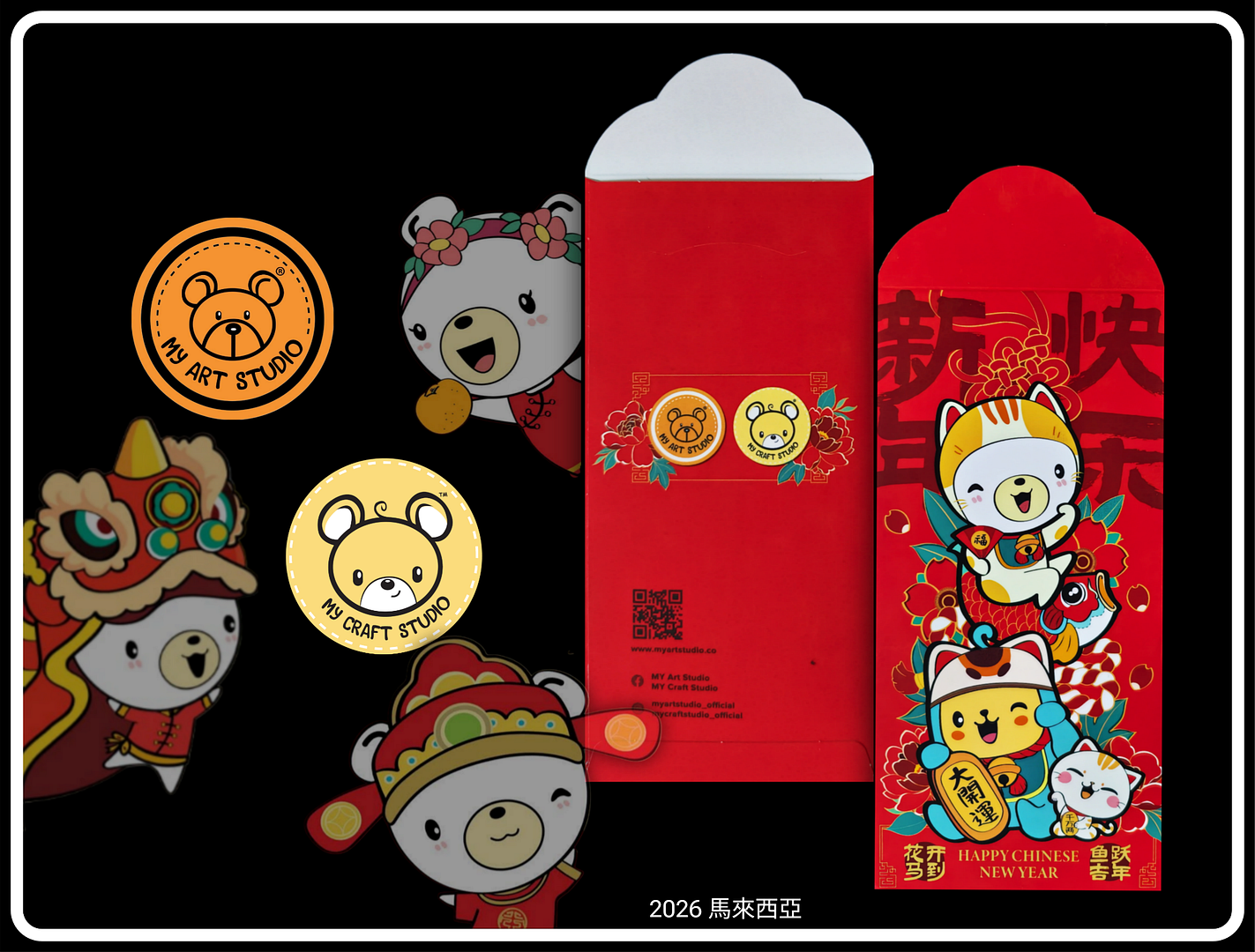 華懋集團8大商場聯乘本地藝術家Bao Ho呈獻「喵來福到開運祭」的「開運利是套裝」!套裝內含一套兩款「開運利是封」、「福到利是袋」及「幸福透明御守」,利是封以「月巴BOSS」及「金多寶」的趣緻大頭造型設計,毛茸茸的馬頭搭配燙金壓製祝福語別具特色!。「福到利是袋」則印有「月巴BOSS」可愛身影,既實用又有意頭!