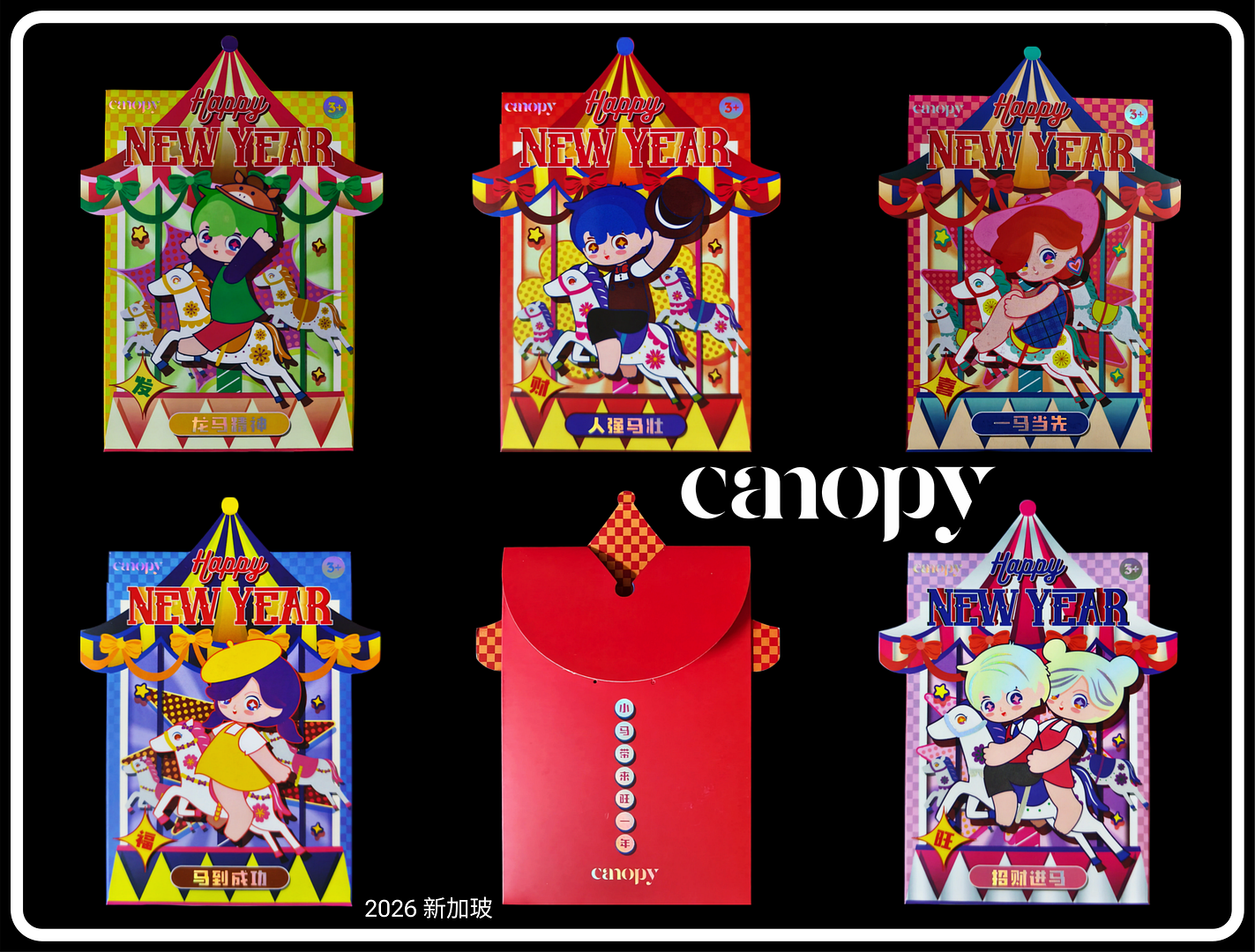 馬年象徵活力奔騰、好運不絕 🌟今年始創中心以一座金碧輝煌嘅旋轉木馬為主軸,打造兩種截然不同的美學語言演繹新春祝福,其設計主色調一冷一暖,一柔一型的「雙生設計」,猶如雙生璧玉,在色彩與視覺上呈現出鮮明的對比,卻又巧妙地相互匹配輝映,各具千秋,共同演繹馬年的無限魅力,成雙成對,新一年的精彩好事加倍而來。兩款利是封在旋轉木馬的細節處,均以閃爍晶瑩的「珠寶」與華麗精緻的襯飾作點綴,為整個設計增添亮麗與堂皇氣派,配上繽紛賀年花海🌺🌼,營造夢幻又富貴嘅新春氣息,寓意大家來年馬到功成、花開富貴、福運滾滾來!